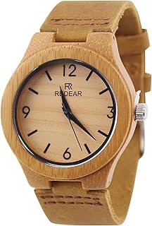 Damen Holzuhr Armbanduhr Analog Quarz Damenuhr Lederarmband Braun