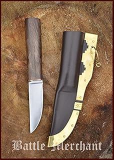 Battle-Merchant Wikinger Messer mit Walnussgriff und Lederscheide 19cm Gebrauchsmesser Karbonstahl LARP Ritter Samurai Mittelalter ab 18 Jahren