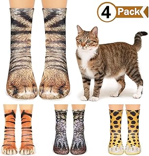 4 Paar Lustige Socken Winter Fun Socken Pfotensocken Katzensocken 3D Bunte Socken Strümpfe Unisex Animal Paw Socken Weihnachten Socken Halloween Socken Damen Herren