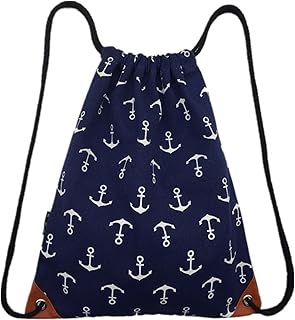 LEAPOP Turnbeutel Hipster Segeltuch Sporttaschen, Unisex Gym Sack Beutel Anker Sportbeutel Tüte Rucksack mit Innentasche und Schlüsselbund, Münzbörsen