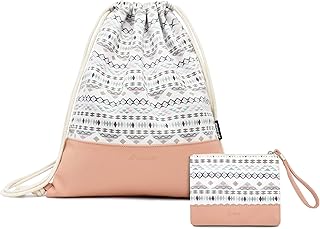 LEAPOP Turnbeutel Hipster Segeltuch Sporttaschen, Tupfen Drucken Gym Sack Beutel Sportbeutel Tüte Rucksack mit Innentasche und Schlüsselbund, Münzbörsen