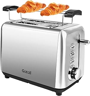 Gotoll Toaster 2 Scheiben,Edelstahl Toaster mit 7 Bräunungsstufen und Brötchenaufsatz,Aufwärmen/Abbrechen/Auftauen Funktion Automatik Toaster für Toastbrot,Brötchen,Sandwich - 780-920W