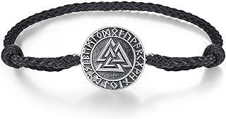 Viking/Compass/Odin Armband 925 Sterling Splitter Vegvisir Campass Nordic Viking Runes Amulett Vintage mit schwarzem Armband Unisex für Männer Frauen Jungen