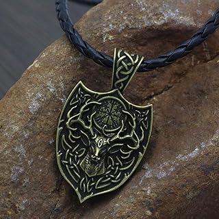 Herren Viking Halskette, Unisex Nordic Double Side Deer Anhänger Amulett Mit Vegvisir Rune, Viking Celtic Retro Heidnischen Geschenkschmuck