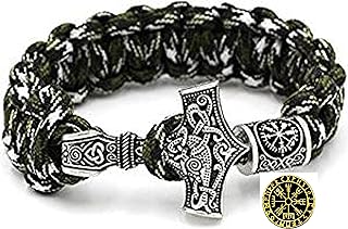 Militär Paracord Armband Buntes Grün camouflage Outdoor - Viking Wikinger Thor Hammer Antik Silber -100% Handarbeit -25 cm Umfang Mit Viking Kompass Rune Perlen