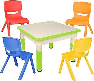 alles-meine.de GmbH Sitzgruppe für Kinder - Tisch + 4 Kinderstühle - Größen & Farbwahl - Holz Farben - höhenverstellbar - 1 bis 8 Jahre - Plastik - für INNEN & AUßEN - Kindertisc..
